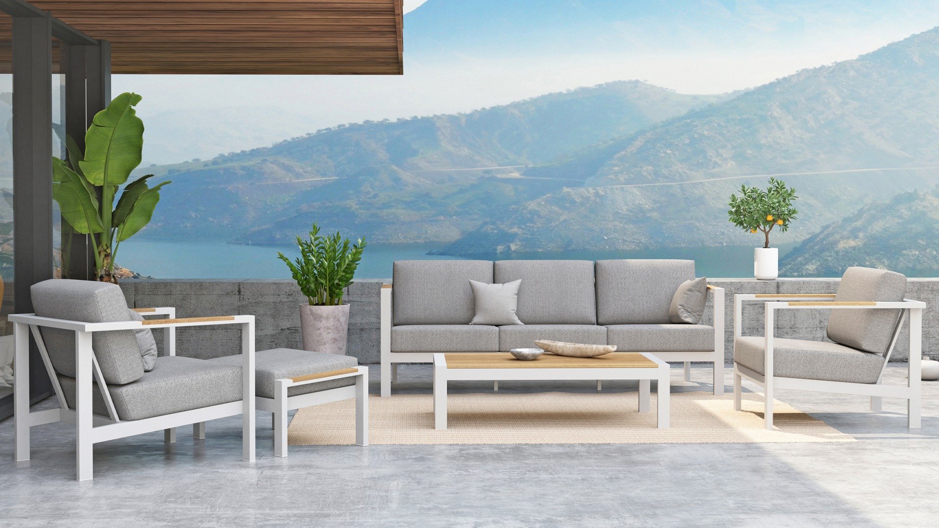 | Materialien Loungegruppe | Pulverbeschichtet Aluminium/Stahl |