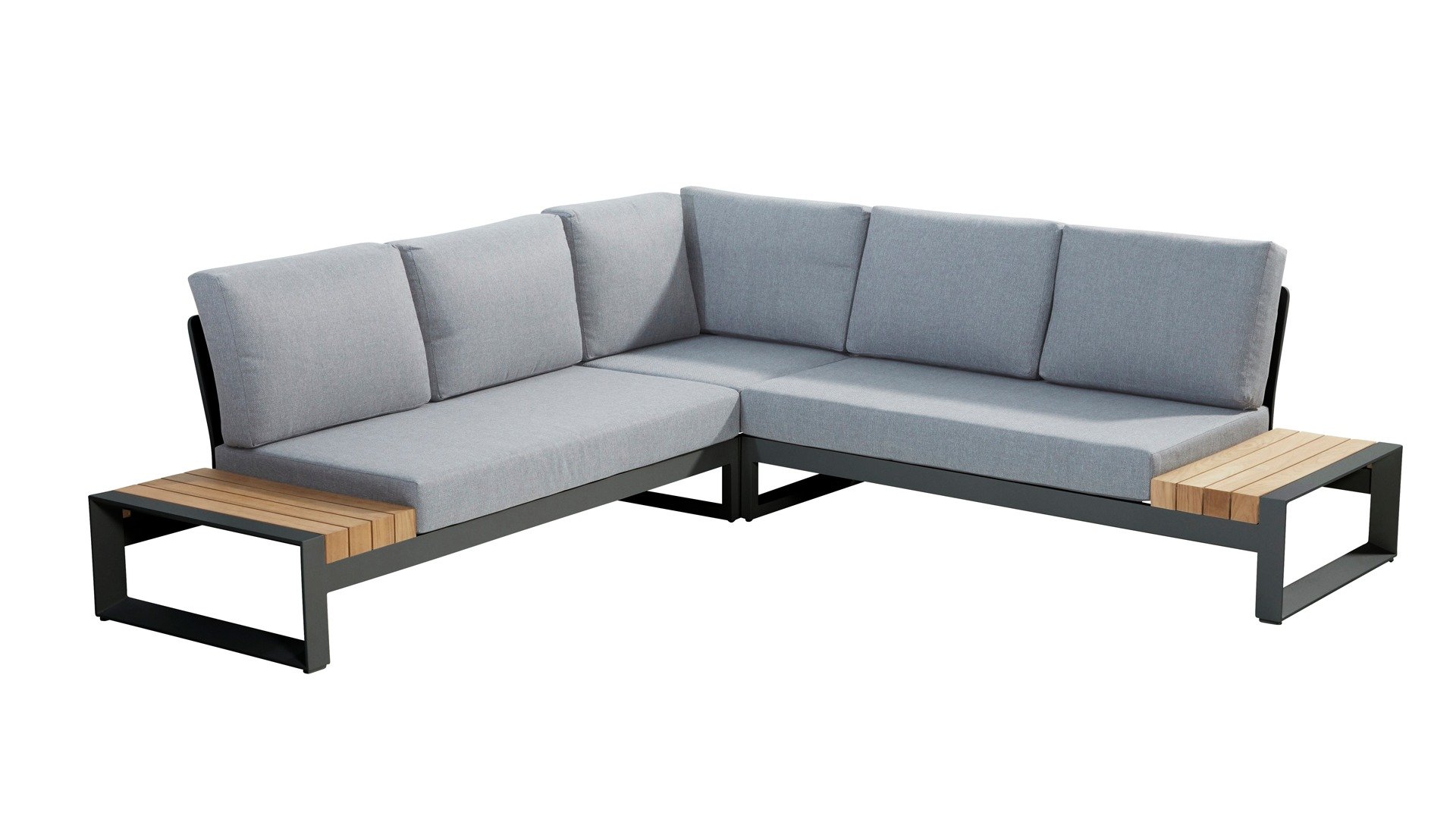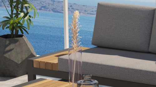 Das Gestell des Taste Matisse besteht aus pulverbeschitetem Aluminium in der Farbe Anthrazit oder White, kombiniert mit den bequemen Olefin-Kissen in der Farbe Hell Grau und (Beistell-)Tischen mit Teakholzdetails entsteht ein Ganzes, das sich sehen lassen kann und von allen Seiten schön ist! Die Kissen haben einen Olefin-Bezug, der abgenommen und bei 30 Grad gewaschen werden kann. Dieser Stoff ist sehr witterungsbeständig und strapazierfähig.