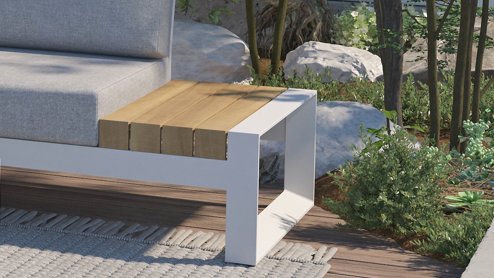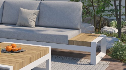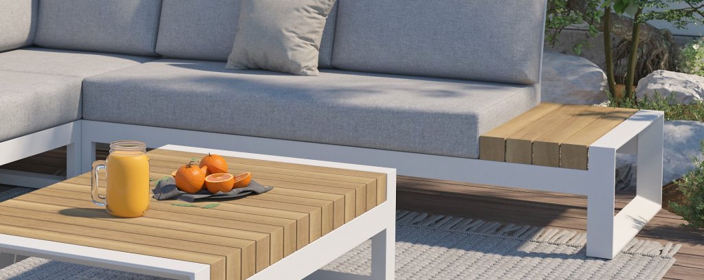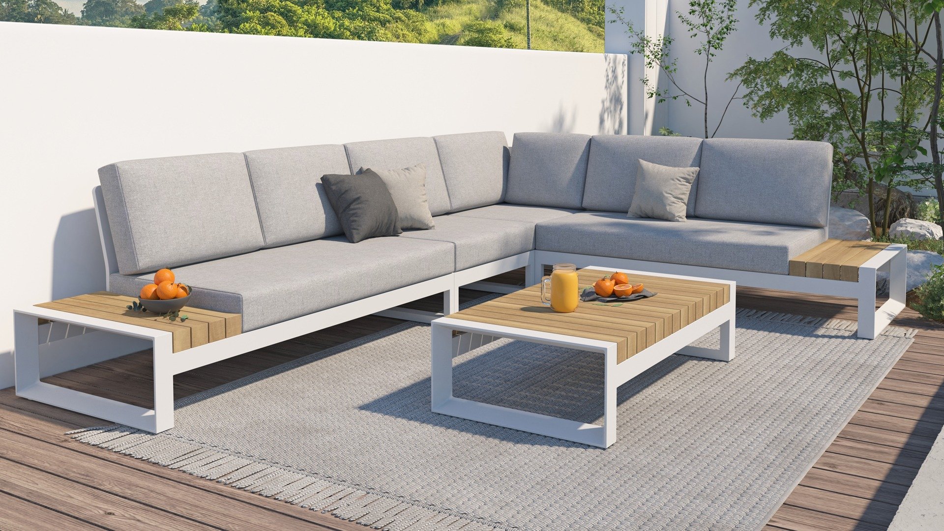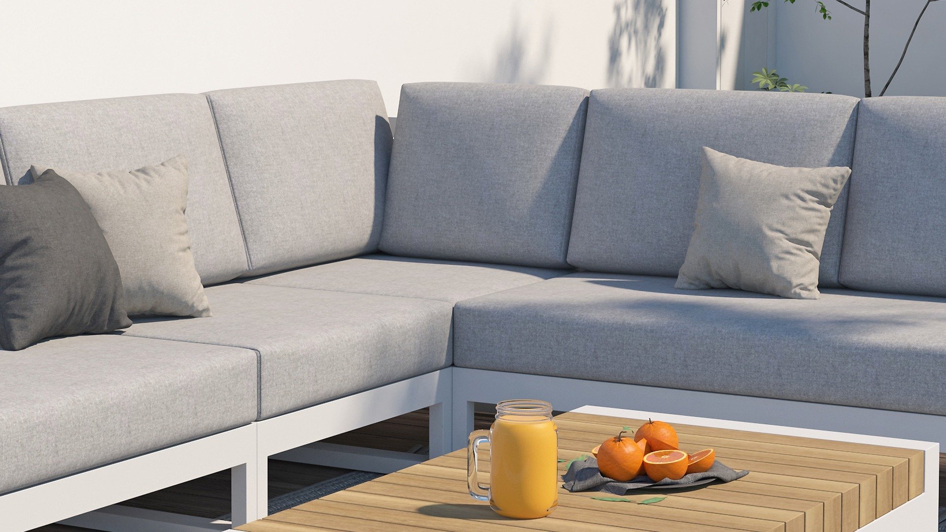 Der robuste Aluminium Rahmen von Taste Matisse verfügt über eine matte Pulverbeschichtung in der Farbe Weiß. Die Kissen in der Farbe Grey sind herrlich voluminös und sehen einladend aus. Der Stoff ist wetterbeständig und hat eine robuste Optik. Die Taste Omega Gartenmöbel verfügen über dicke und sehr bequeme Kissen mit Bezügen aus Olefin-Material, das extrem witterungsbeständig und langlebig ist. Einfach den Reißverschluss öffnen und bei 30 Grad waschen / trocknen.