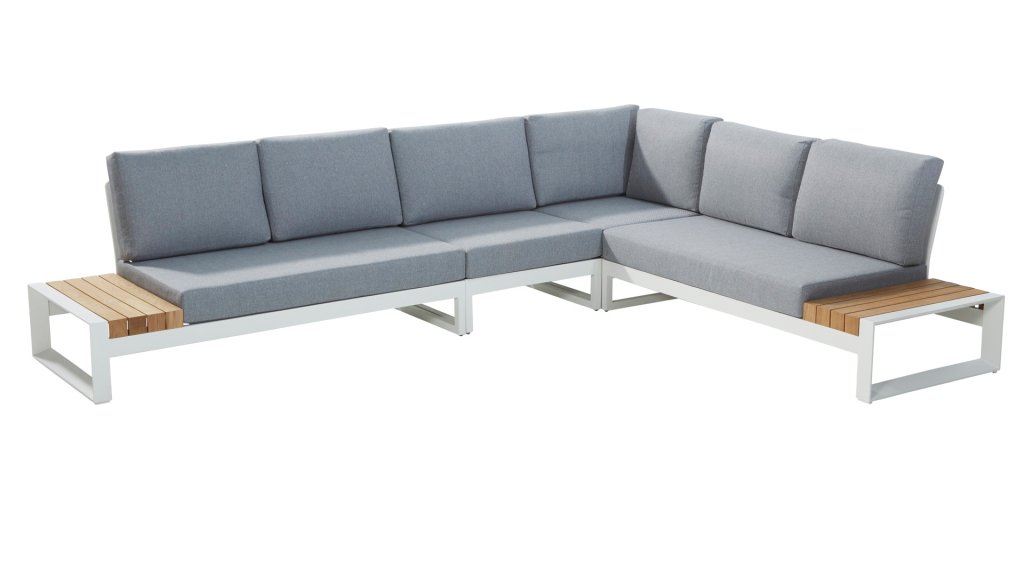 Das Gestell des Taste Matisse besteht aus Aluminium in frischem Weiß, kombiniert mit den bequemen Olefin-Kissen in der Farbe Grau entsteht ein Ganzes, das sich sehen lassen kann und von allen Seiten schön ist! Die Kissen haben einen Olefin-Bezug, der abgenommen und bei 30 Grad gewaschen werden kann. Dieser Stoff ist sehr witterungsbeständig und strapazierfähig. Die in das Gestell eingearbeiteten Textilene-Gurte verleihen dem Tafe 4SO Matisse Lounge Set einen wunderbaren Komfort.