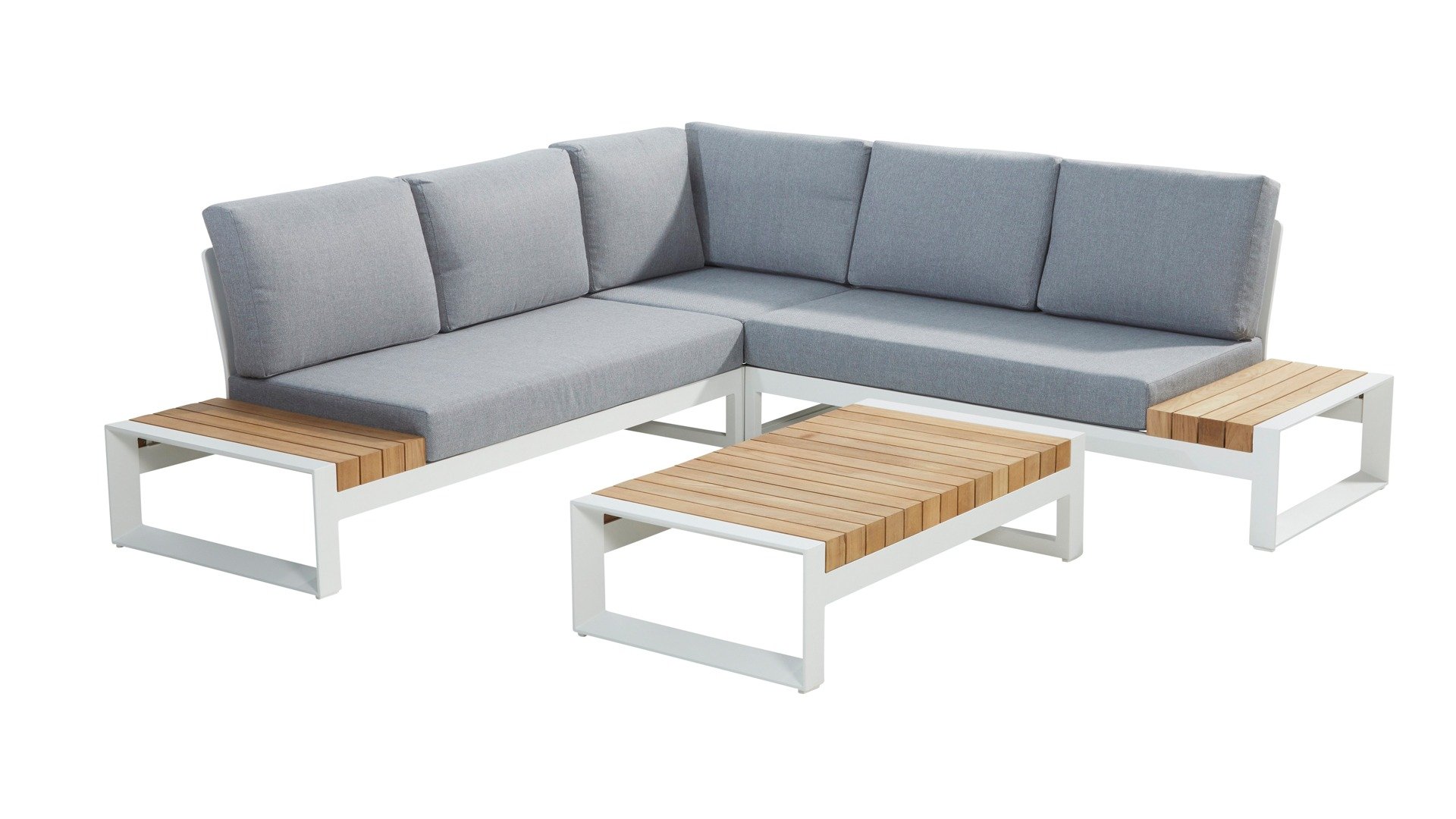 Das Gestell des Taste Matisse besteht aus Aluminium in frischem Weiß, kombiniert mit den bequemen Olefin-Kissen in der Farbe Grau entsteht ein Ganzes, das sich sehen lassen kann und von allen Seiten schön ist! Die Kissen haben einen Olefin-Bezug, der abgenommen und bei 30 Grad gewaschen werden kann. Dieser Stoff ist sehr witterungsbeständig und strapazierfähig. Die in das Gestell eingearbeiteten Textilene-Gurte verleihen dem Tafe 4SO Matisse Lounge Set einen wunderbaren Komfort.