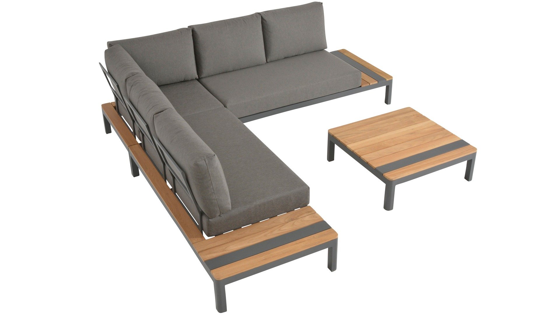 Nachmittag - nehmen Sie sich Zeit und entspannen Sie sich. Die Kombination der Materialen verleiht dem Meridien seinen einzigartigen Look. Stilvolles anthrazitfarbenes Aluminium und Teakholz sind eine klassische Kombination, die in dieser komfortablen Plattform-Lounge-Gruppe perfekt in Szene gesetzt werden.