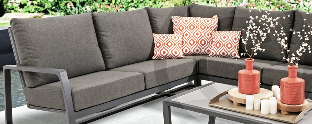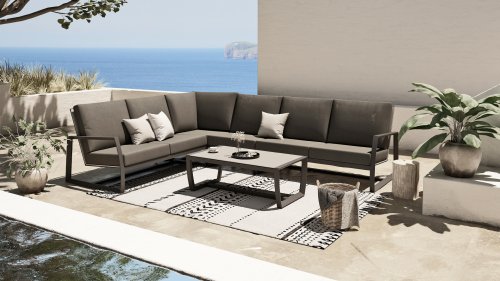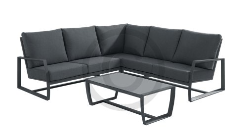 Diese Taste by 4Seasons Sitzgruppe Mauritius überzeugt durch das moderne und dennoch zeitlose Design. Die bequemen Polster der Taste Mauritius sorgen für einen unglaublichen hohen Sitzkomfort. Auf der Terrasse, im Wintergarten oder im Wohnbereich machen die Mauritius Taste by 4Seasons Living Garten Möbel immer einen guten Eindruck. Die Taste Mauritius Loungemöbel basieren auf einem hochwertigen Aluminium Gestell. Dieses ist in Matt Carbon Farbe pulverbeschichtet um vor Witterungseinflüssen geschützt zu sein. Die Kissen sind Semi All-Weather olefin Stoff. Verfugbar in einen Eck-Loungegruppe und Sofa mit Sessel!