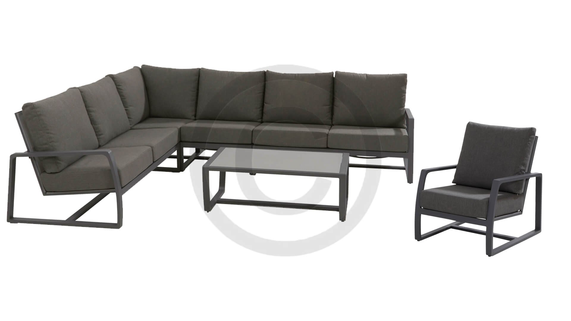 | Materialien Loungegruppe | Pulverbeschichtet Aluminium/Stahl |