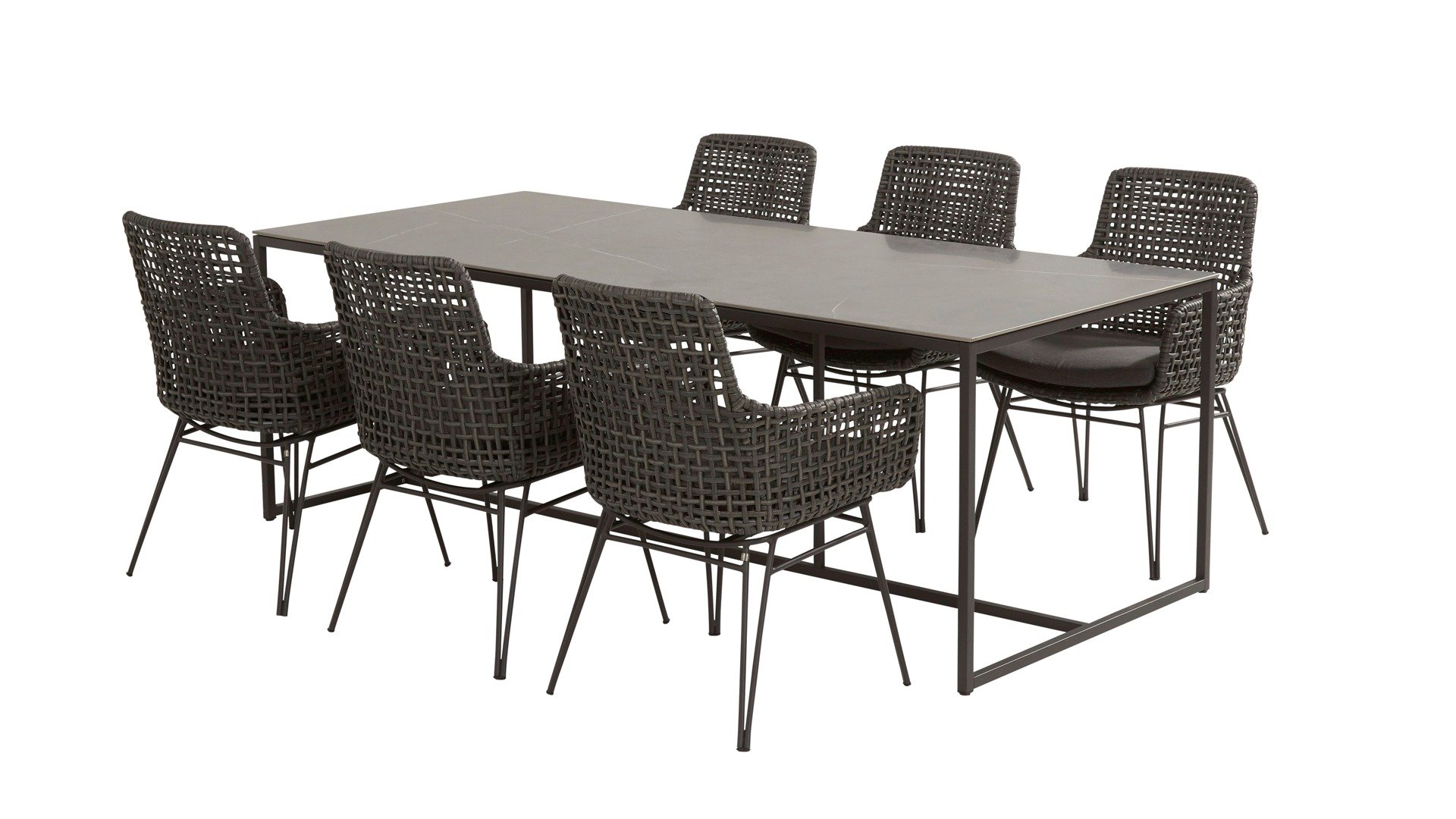 Der elegante Tisch Quatro 220 von 4Seasons Outdoor verleiht Ihrer Essgruppe einen eleganten Look. Die Keramikplatte und die pulverbeschichteten Edelstahlbeine sind wartungsfrei.
