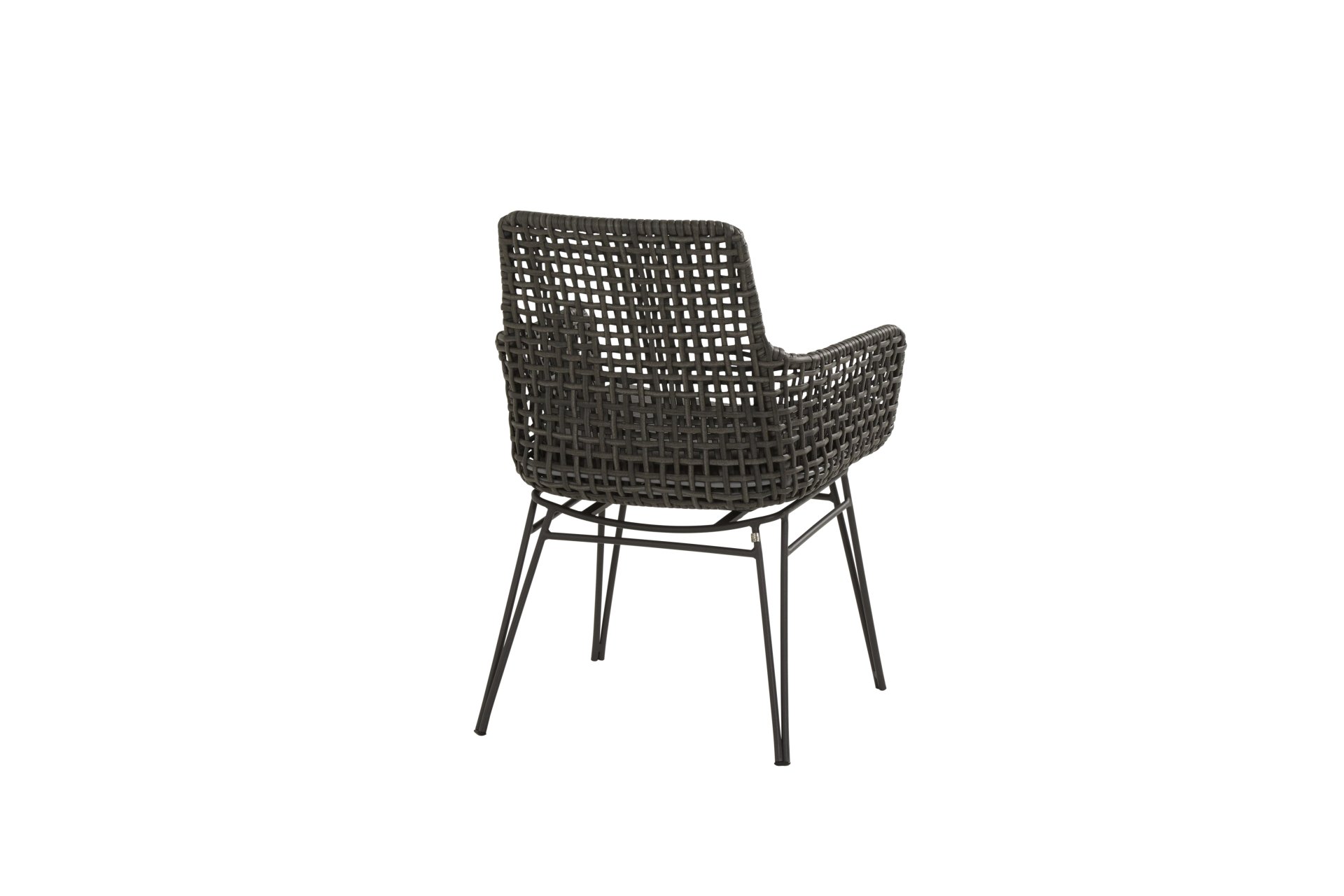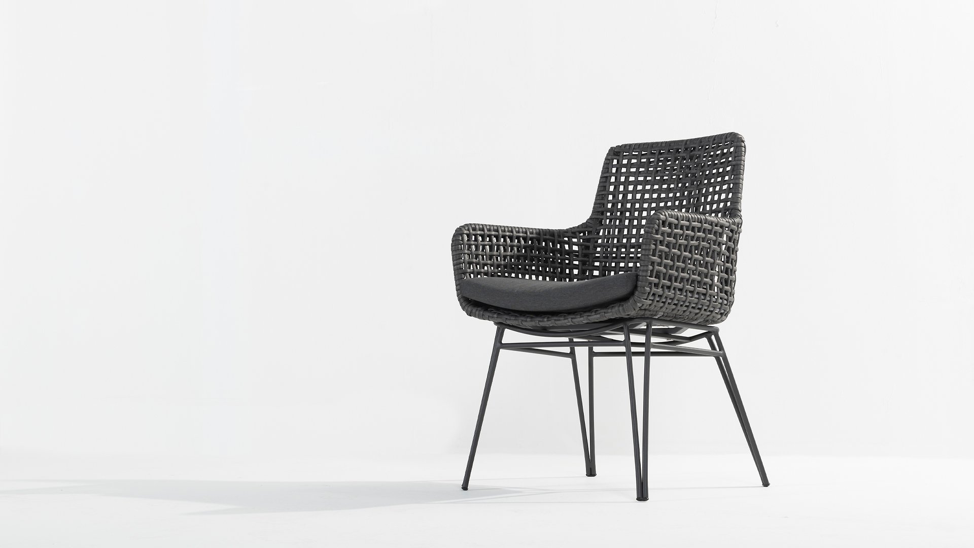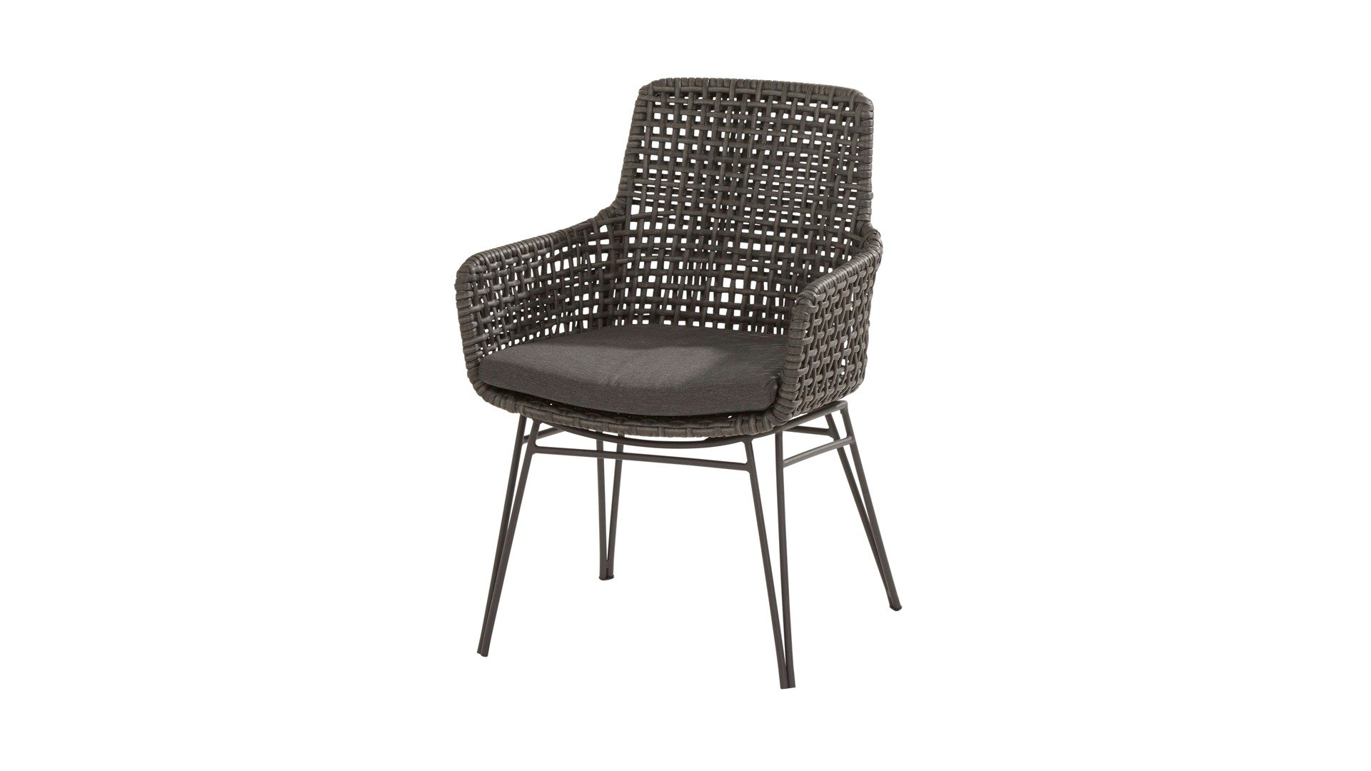 Die Taste by 4Seasons Opera Dining-Serie zeichnet sich durch ein verspieltes Geflecht aus übereinander geflochtenen Fäden aus, wodurch ein "offenes Gewebe" entsteht, ein frisches und luftiges Muster. Das professionelle Geflecht ziert einen minimalistischen Sockel aus dezenten Edelstahlrohren in anthrazitfarbener Beschichtung. Zusätzlich sind die Kissen mit einem Olefin-Kissenbezug für besten Komfort und hohe Witterungsbeständigkeit versehen.