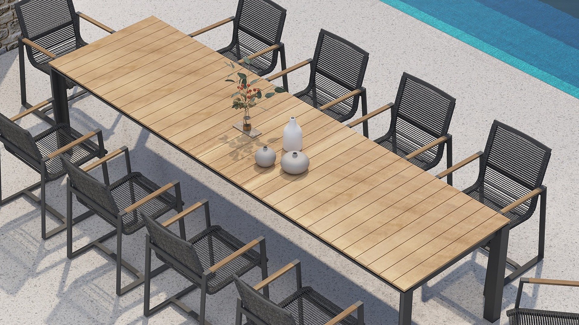 Aluminium ist sehr wartungsfreundlich und leicht. Diese praktischen Möbel sind leicht zu reinigen. Unser Aluminium mit einer festen Pulverbeschichtung ist witterungsbeständig und UV-beständig. Aluminium ist nicht rostanfällig, zeitlos und stilvoll.