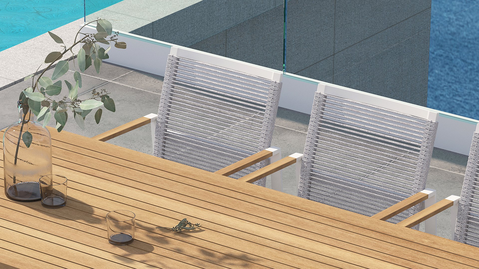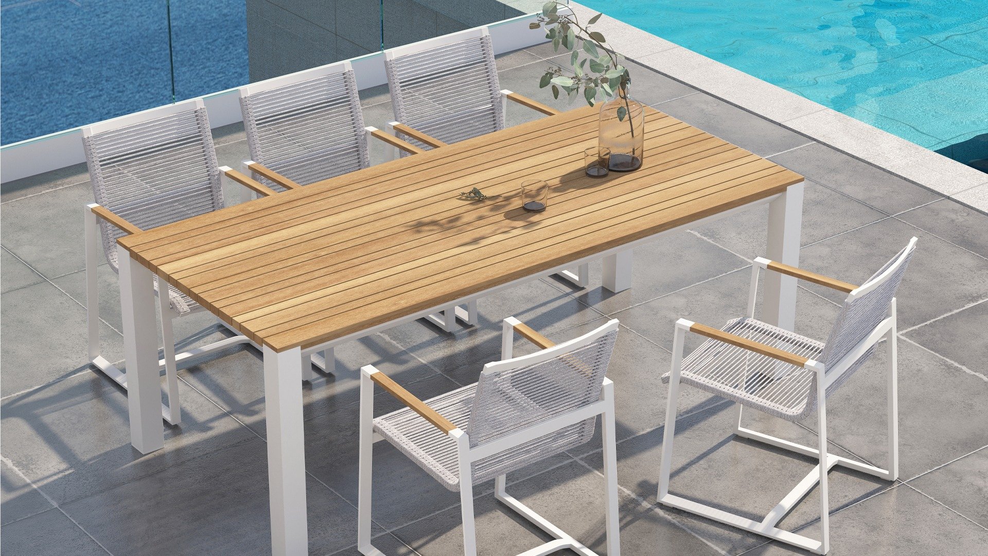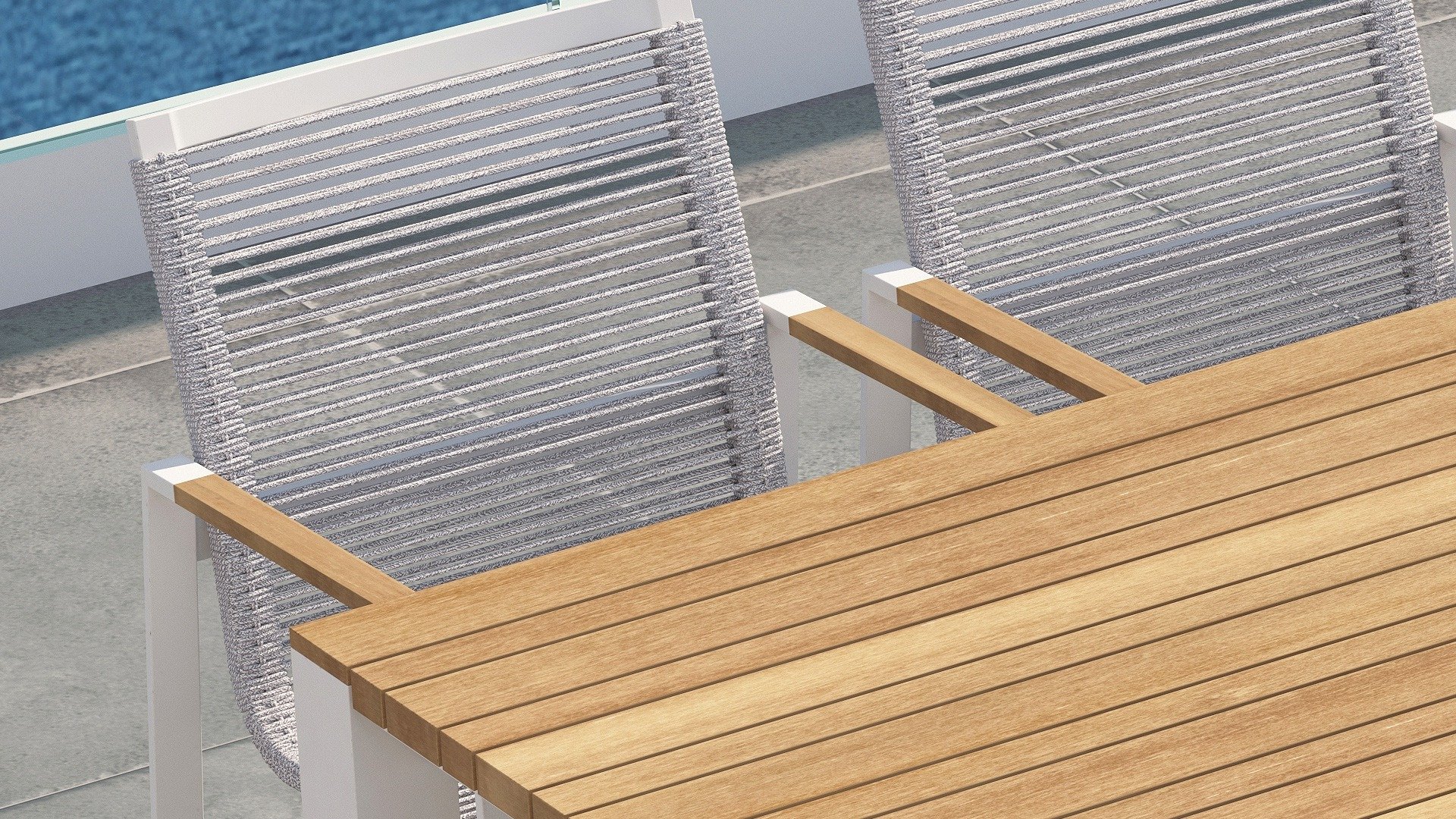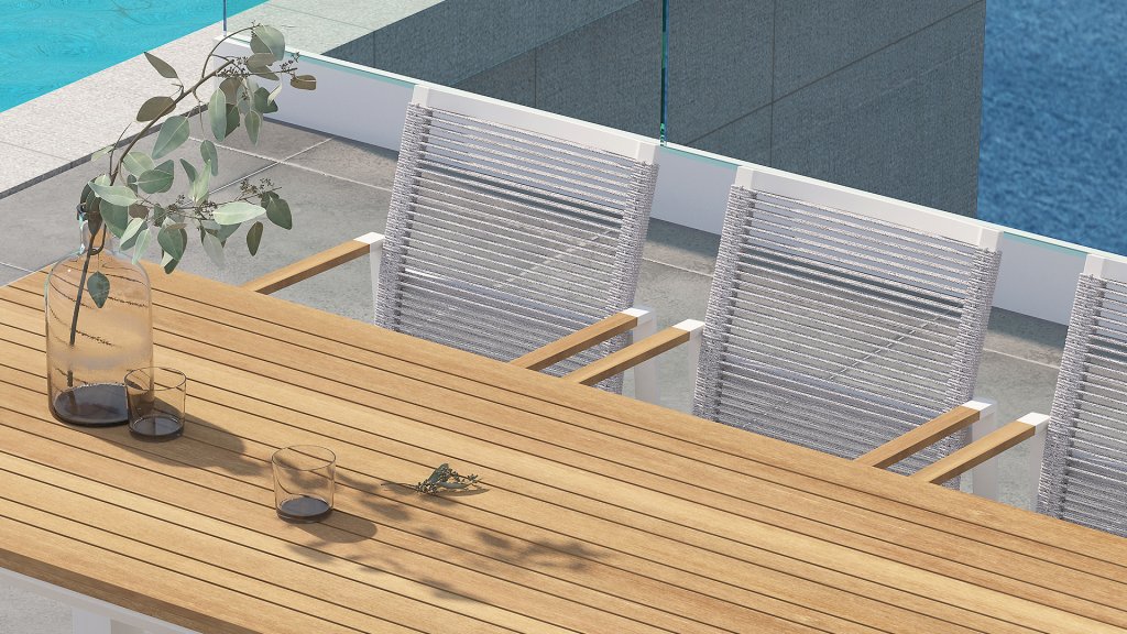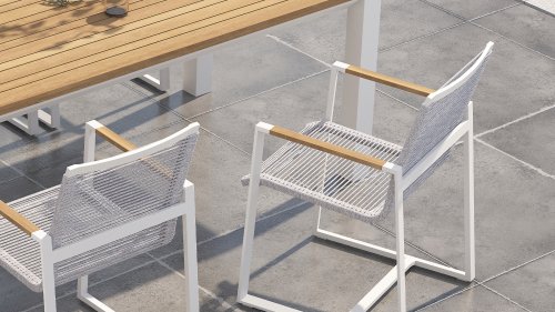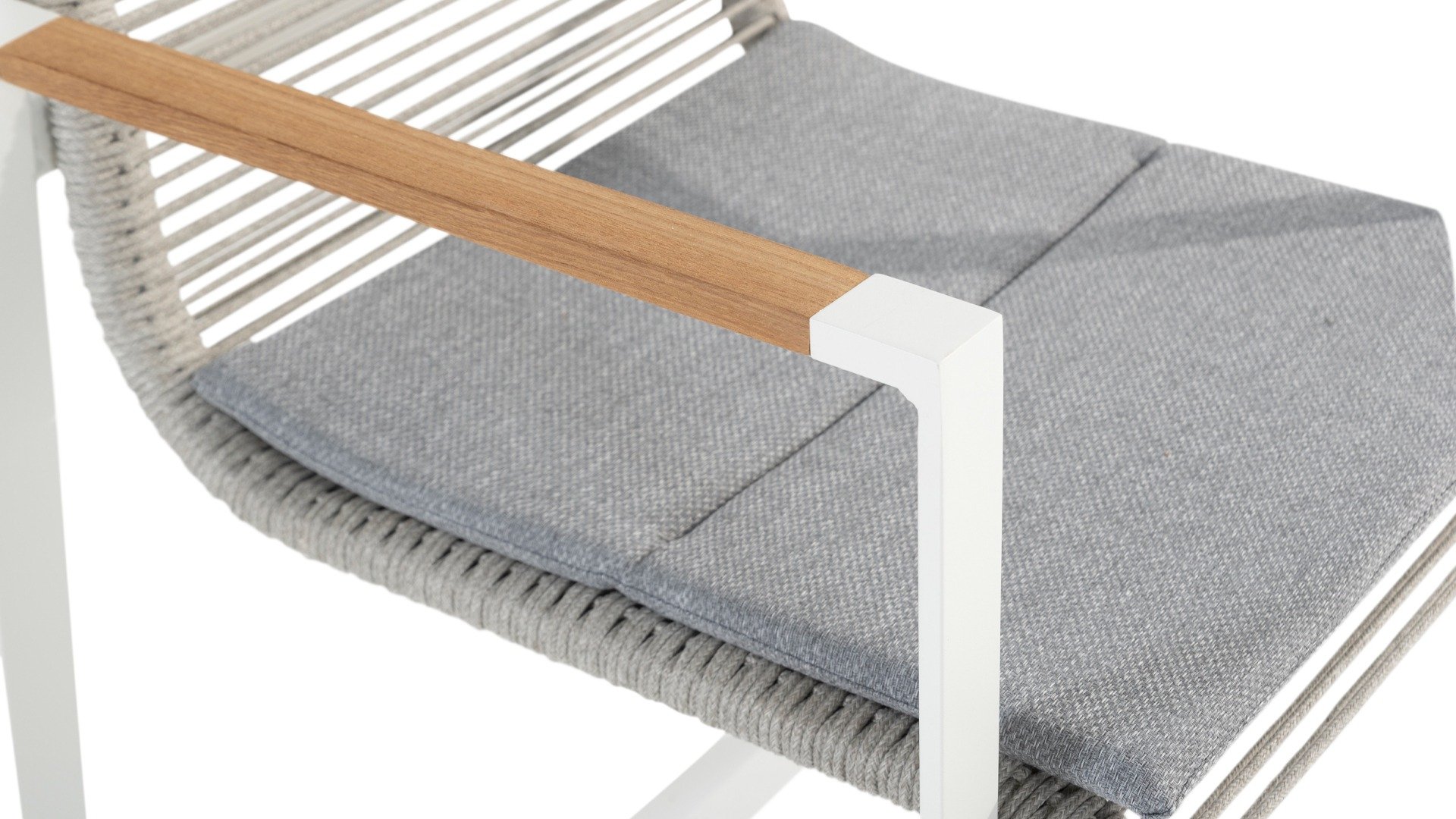 Der Pandino Stuhl ist eine Augenweide. Der anthrazitfarbene Aluminiumrahmen ist robust und modern. In den Armlehnen wird Teakholz verarbeitet, damit die Armlehne in der Sonne nicht heiß wird und diesem Stuhl dennoch ein warmes Aussehen verleiht. Dies verleiht dem Pandino Stuhl auch ein luxuriöses Aussehen. Dadurch lässt sich dieser Stuhl leicht mit allen Arten von Tischen kombinieren. Wir lieben es wirklich, diesen Pandino mit einem Tisch mit Teakholzplatte und anthrazitfarbenem Rahmen zu kombinieren!