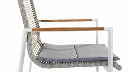 Der Pandino Gartenstuhl von Taste 4SO ist ein wunderschöner Stuhl, den Sie sehr genießen werden. Der Pandino Gartenstuhl hat aufgrund des geformten Sitzes und des Rückenteils einen sehr angenehmen Sitz. Das mitgelieferte Sitzkissen bietet ein bisschen zusätzlichen Sitzkomfort. Taste 4SO wählt die Materialien, die in der schönen Sammlung von Gartenmöbeln verwendet werden, sehr sorgfältig aus. Auf diese Weise erhalten Sie eine 5-jährige Garantie auf die Qualität, kurz gesagt, genießen Sie es sorglos! Natürlich ist das wetterfeste Seilmaterial in Sitz und Rückenlehne wichtig. Dank der perfekten Kombination aus Flexibilität und Dimensionsstabilität werden Sie wunderbar unterstützt und können problemlos einige Stunden in diesem schönen Stuhl sitzen. Die Pandino Weiß is auch Erhaltlich im Farbe Pandino Anthrazit.