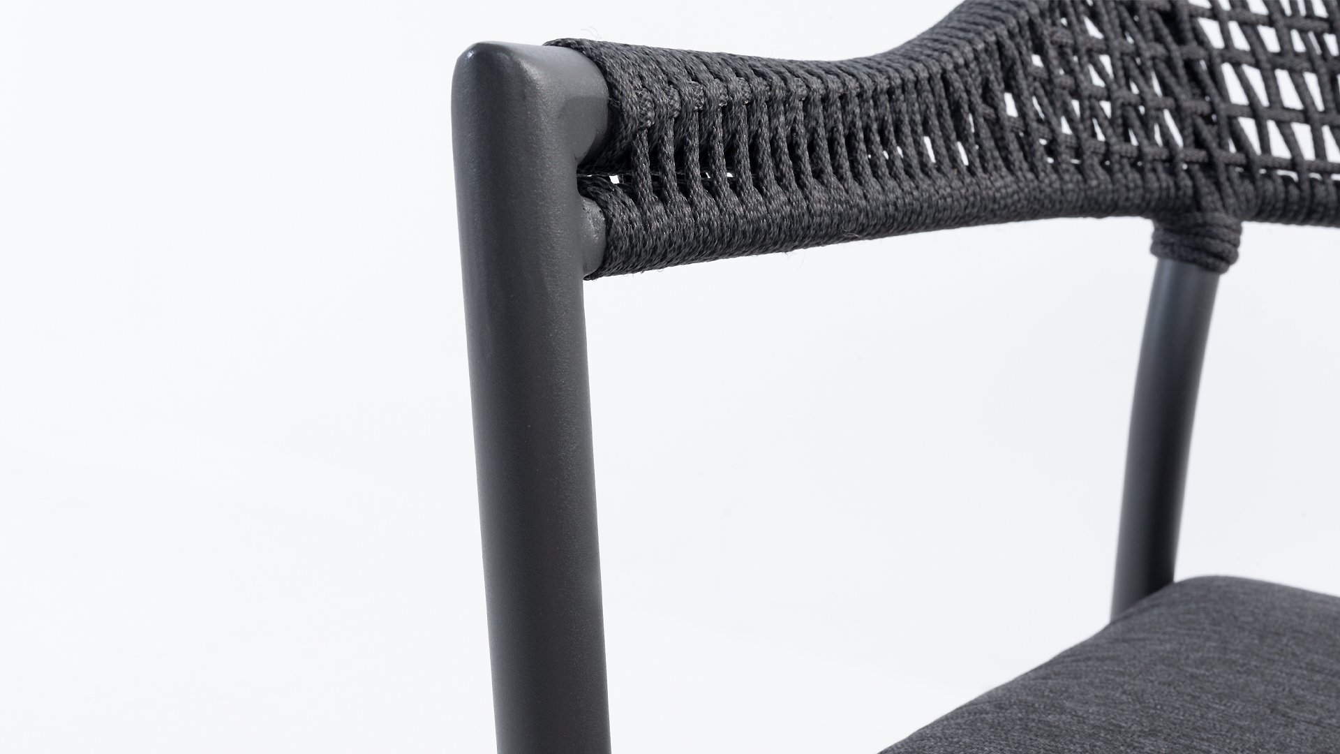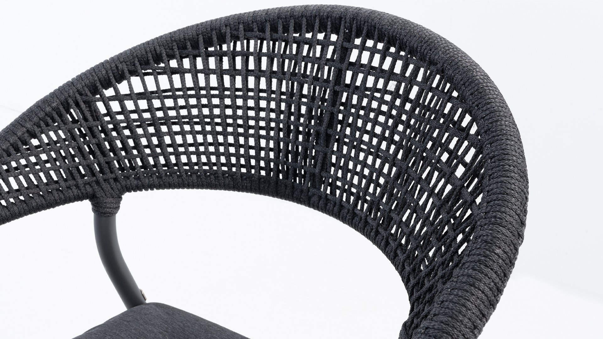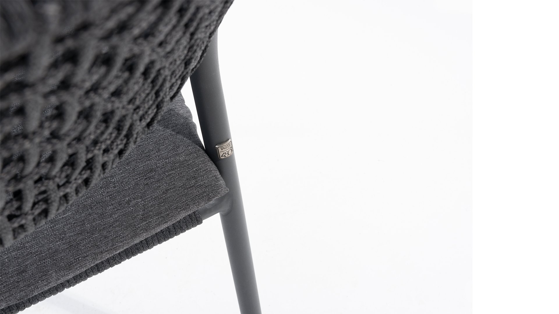 Das Taste by 4 Seasons Sienna Gartenset hat seinen eigenen einzigartigen Stil, der mit dem modernen Seil vervollständigt wird! Die Schönheit liegt im Detail. Die Rückenlehne der Essgruppe Sienna von Taste by 4Seasons ist aus Seil gewebt und bietet einen festen, aber bequemen Sitz. Der Rahmen bildet ein spielerisches und minimalistisches Wechselspiel aus fließenden Linien, die ein solides Gerüst bilden. Eine Lust fürs Auge! Der Sienna hat einen anthrazitfarbenen Aluminiumrahmen.