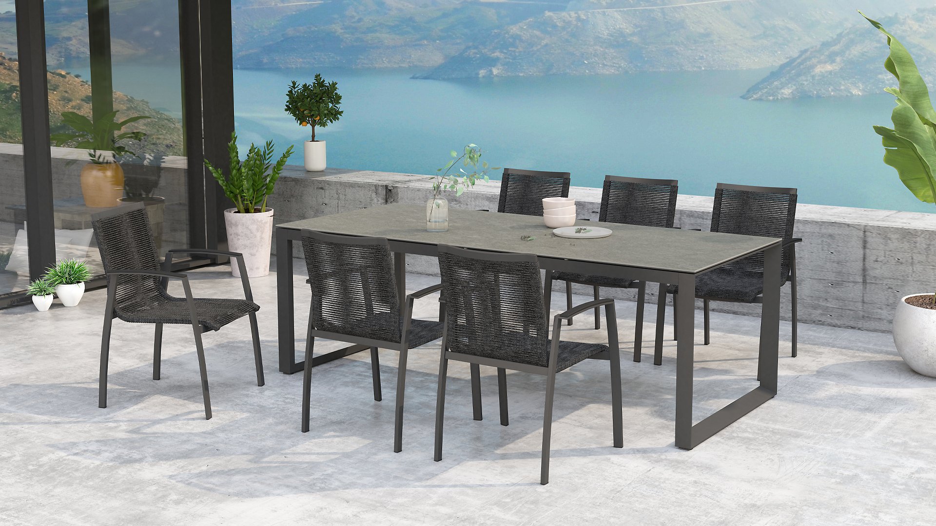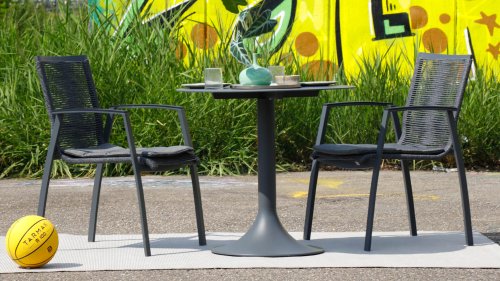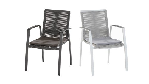 Das Aluminiumgestell sorgt dafür, dass der Stuhl wartungsarm ist und das Torino-Esszimmer auch stapelbar ist. Der Torino kann mit vielen Tischmodellen aus der Taste 4SO-Kollektion kombiniert werden und ist in zwei Seilfarben erhältlich: Anthrazit und Weiß. Die Kombination all dieser Faktoren stellt sicher, dass diese Taste 4SO Gartenstühle Ihnen ein maximales Erlebnis bieten. Die Gartenstühle Taste 4SO Torino sind für die warmen und milden Sommerabende unverzichtbar.