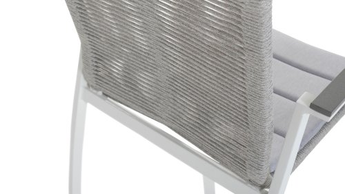 Der Torino Esszimmerstuhl von Taste 4SO ist ein wunderschön geformter Stuhl aus Materialien, die allen Wetterbedingungen standhalten. Dieser Stuhl war bereits in einer Version mit Textilien im Sitz- und Rückenteil erhältlich. Um dem Stuhl ein moderneres Aussehen zu verleihen, wurde er in dieser Variante durch ein Seil ersetzt. Der Sitzkomfort ist sehr gut, genau wie bei der Textilene-Variante, und mit diesem Seil-Torino-Stuhl erhalten Sie auch ein Sitzkissen.