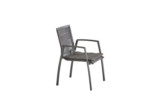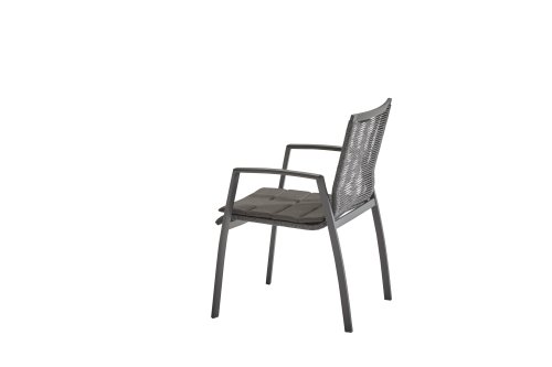 Das Gestell des Taste by 4 Seasons Outdoor Torino Gartenstuhls besteht aus Aluminium, Sitzfläche und Rückenlehne aus witterungsbeständigem Seildraht. Seilfaden sorgt für optimalen Sitzkomfort! Es hat einen Kern, der dafür sorgt, dass es farbecht, robust und schimmelresistent ist. Der Taste Torino Gartenstuhl ist stapelbar und in den schicken Farben Anthrazit & Weiß erhältlich. Schön und zeitlos passt der Taste 4SO Gartenstuhl perfekt auf die Terrasse. Die Armlehnen der Torino Gartenstühle sind ebenfalls mit einem strapazierfähigen Kunststoff in einer perfekt passenden und schönen Kontrastfarbe angereichert. Dank des flexiblen Rückentextilens können Sie bei jeder Gelegenheit bequem sitzen, denn die Rückenlehne folgt der Form des Rückens. Der Gartenstuhl ist sehr leicht und stapelbar. Dadurch können Sie den Stuhl im Winter problemlos verstauen, ohne viel Platz in Anspruch zu nehmen. Diese Serie ist auch mit Rücken und Sitz aus Textilene in den Farben Silver grau, Weiß & Anthrazit erhältlich.