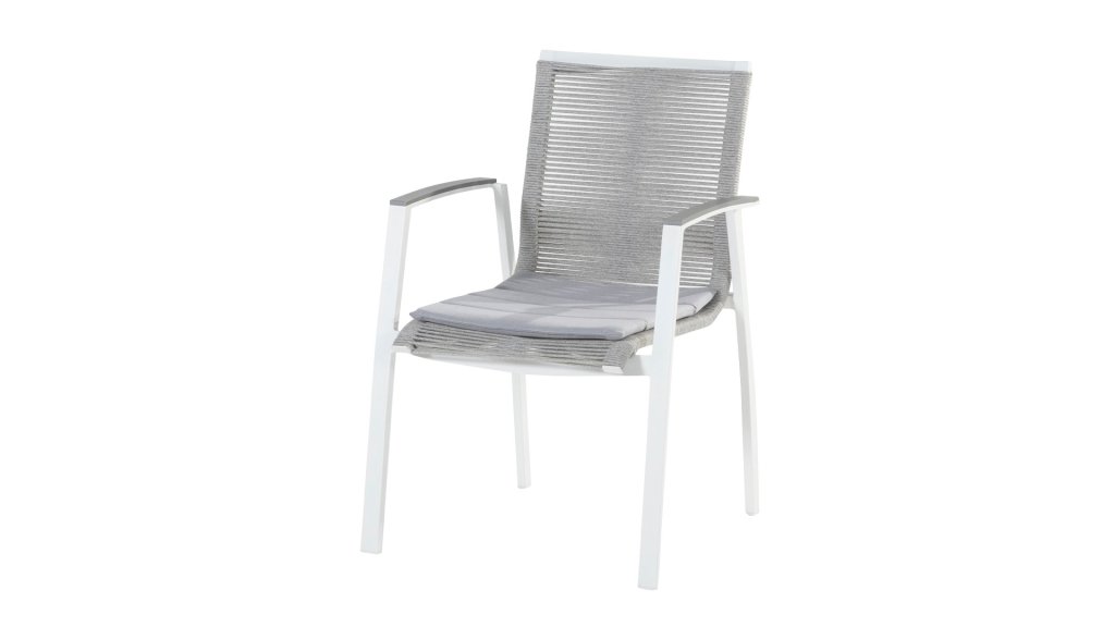 Das Gestell des Taste by 4 Seasons Outdoor Torino Gartenstuhls besteht aus Aluminium, Sitzfläche und Rückenlehne aus witterungsbeständigem Seildraht. Seilfaden sorgt für optimalen Sitzkomfort! Es hat einen Kern, der dafür sorgt, dass es farbecht, robust und schimmelresistent ist. Der Taste Torino Gartenstuhl ist stapelbar und in den schicken Farben Anthrazit & Weiß erhältlich. Schön und zeitlos passt der Taste 4SO Gartenstuhl perfekt auf die Terrasse. Die Armlehnen der Torino Gartenstühle sind ebenfalls mit einem strapazierfähigen Kunststoff in einer perfekt passenden und schönen Kontrastfarbe angereichert. Dank des flexiblen Rückentextilens können Sie bei jeder Gelegenheit bequem sitzen, denn die Rückenlehne folgt der Form des Rückens. Der Gartenstuhl ist sehr leicht und stapelbar. Dadurch können Sie den Stuhl im Winter problemlos verstauen, ohne viel Platz in Anspruch zu nehmen. Diese Serie ist auch mit Rücken und Sitz aus Textilene in den Farben Silver grau, Weiß & Anthrazit erhältlich.