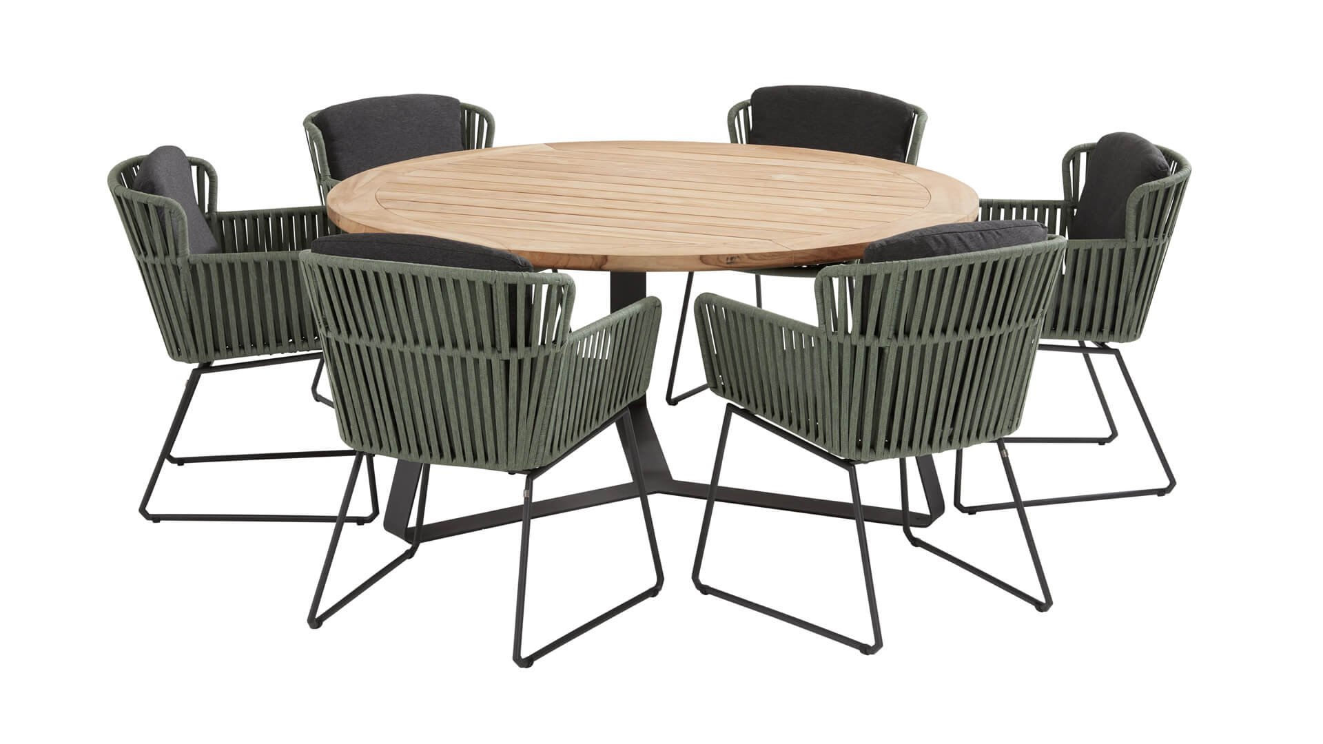 Der Taste 4Seasons Vitali Dining ist ein ruhigerer Esszimmerstuhl. Geschmacksverwöhnte sehr hochwertige Seile aus 100 % SDP (Slution Dyed Polypropylene). Dieses Material ist extrem stark und hat einen sehr geringen Dehnungsanteil. Polypropylen ist auf Ölbasis, wodurch Schmutz und Schmutz kaum Endringe können, genau wie unsere Kissen. Die serienmäßigen Sitz- und Rückenkissen machen den Stuhl sehr bequem. 5 Jahre Standardgarantie. Darüber hinaus ist der Vitali auch in Anthrazit erhältlich.