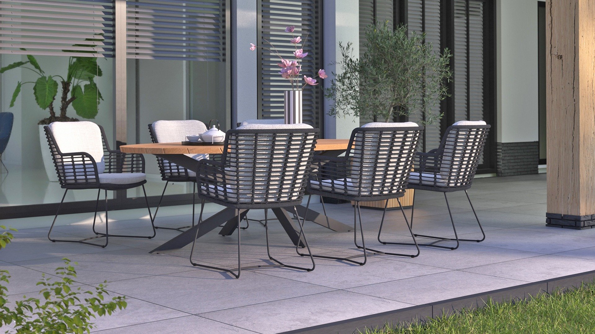 Aluminium ist sehr wartungsfreundlich und leicht. Diese praktischen Möbel sind leicht zu reinigen. Unser Aluminium mit einer festen Pulverbeschichtung ist witterungsbeständig und UV-beständig. Aluminium ist nicht rostanfällig, zeitlos und stilvoll