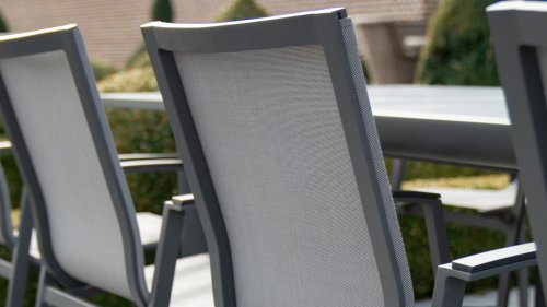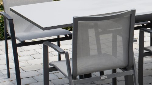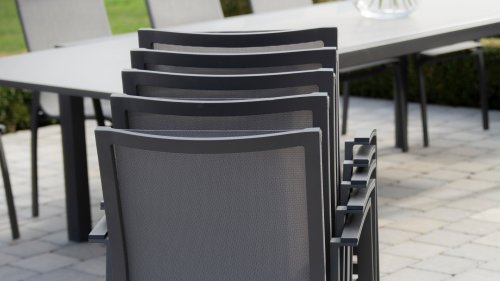 Das Gestell des Taste by 4 Seasons Outdoor Torino Gartenstuhls besteht aus Aluminium, Sitzfläche und Rückenlehne aus witterungsbeständigem Textilene. Textilene sorgt für optimalen Sitzkomfort! Der Taste Torino Gartenstuhl ist stapelbar und in den schicken Farben Slate Grey, Anthrazit und Weiß erhältlich.