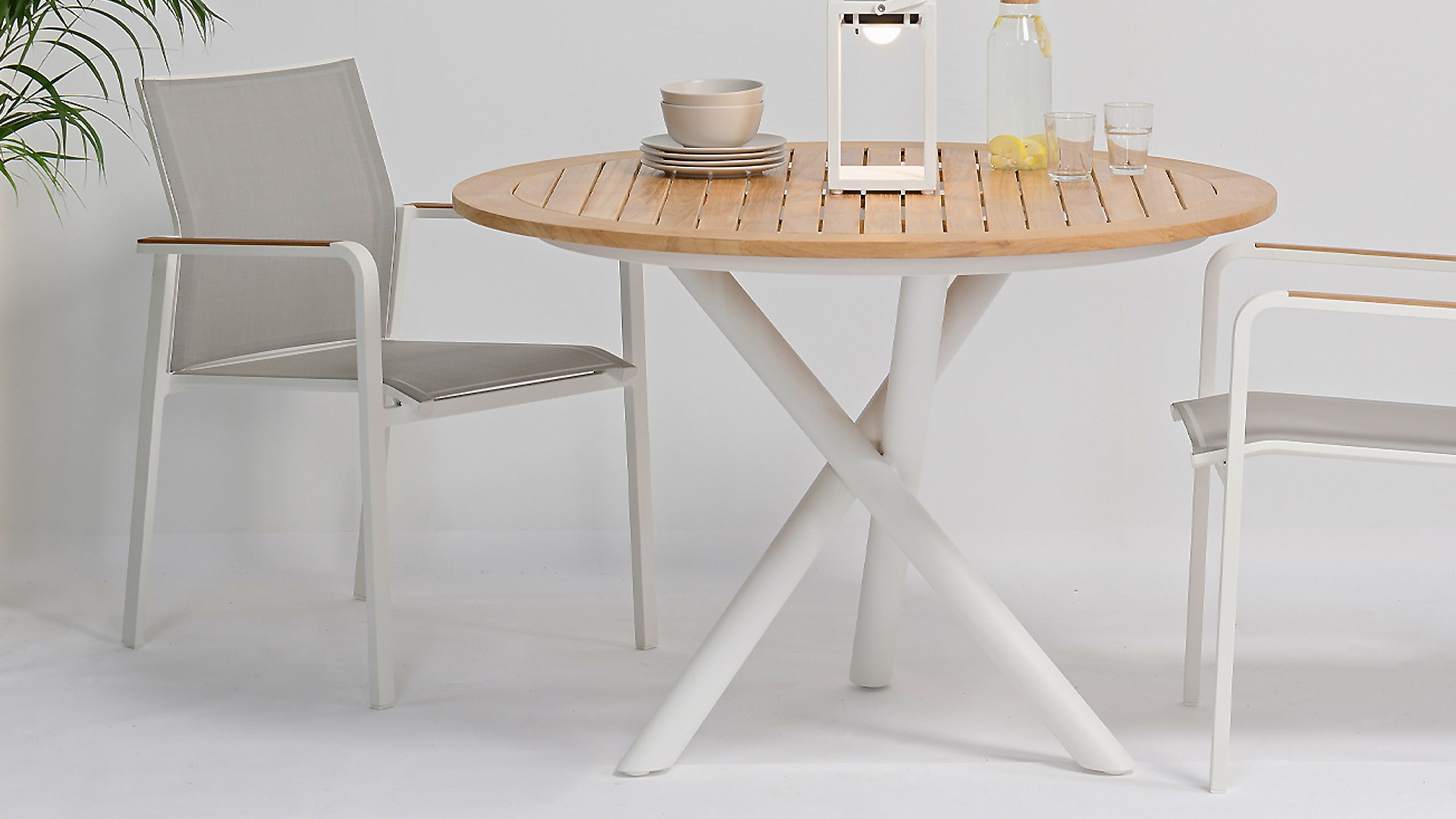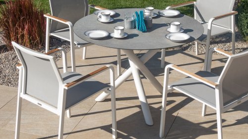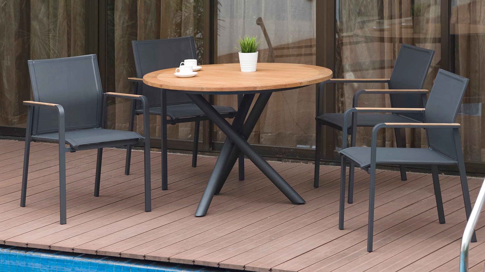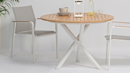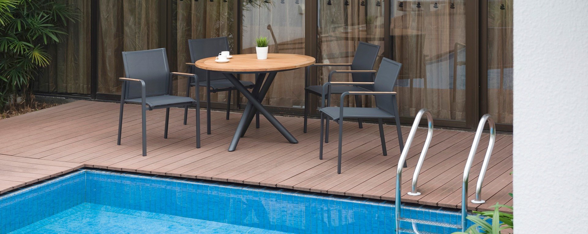Das passt zu Ihrem Stapelsessel Bee Das Design des Gartenstuhls „Bee“ ist perfekt auf den passenden Tisch der gleichen Serie abgestimmt. Aufgrund seiner gelungenen Materialkombination aus Aluminium, Teakholz und Textilgewebe lässt sich der Stuhl aber auch mit Tischen aus den verschiedensten Materialien kombinieren. Er ist absolut wetterfest, rostfrei und kann das ganze Jahr über im Freien stehen bleiben. Um die Gartenstühle dennoch vor Verschmutzungen und Umwelteinflüssen wie Blütenpollen oder Frost zu schützen, empfehlen wir die Verwendung einer passenden Schutzhülle.