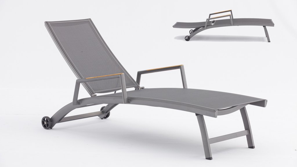 Die Zebra Greenline Fly-Serie. Das Gestell aus pulverbeschichtetem Aluminium Graphit, Elegance grau oder Edelstahl. Diese Serie ist mit einem dunkelgrauen Batyline®-Stoff bezogen. Das verwendete Batyline® Textilene ist ein bewährtes synthetisches Gewebe, das atmungsaktiv und über mehrere Jahre reißfest ist. Die Greenline-Serie von Zebra vereint unter anderem Zeitgenössisches, Ökologie und Nachhaltigkeit. Im Unternehmenskonzept Greenline steht das Thema Nachhaltigkeit und die Auswahl umweltfreundlicher Materialien, die zu bequemen, formschönen, zeitlosen Möbeln verarbeitet werden.
