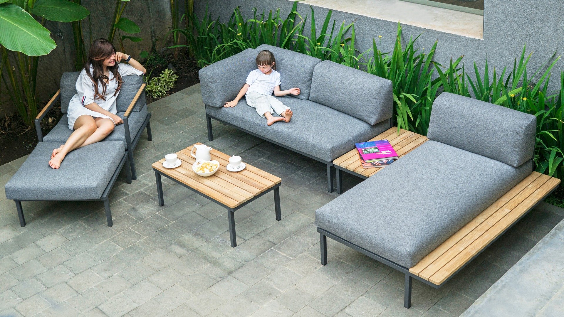 | Materialien Loungegruppe | Teak, Edelstahl |