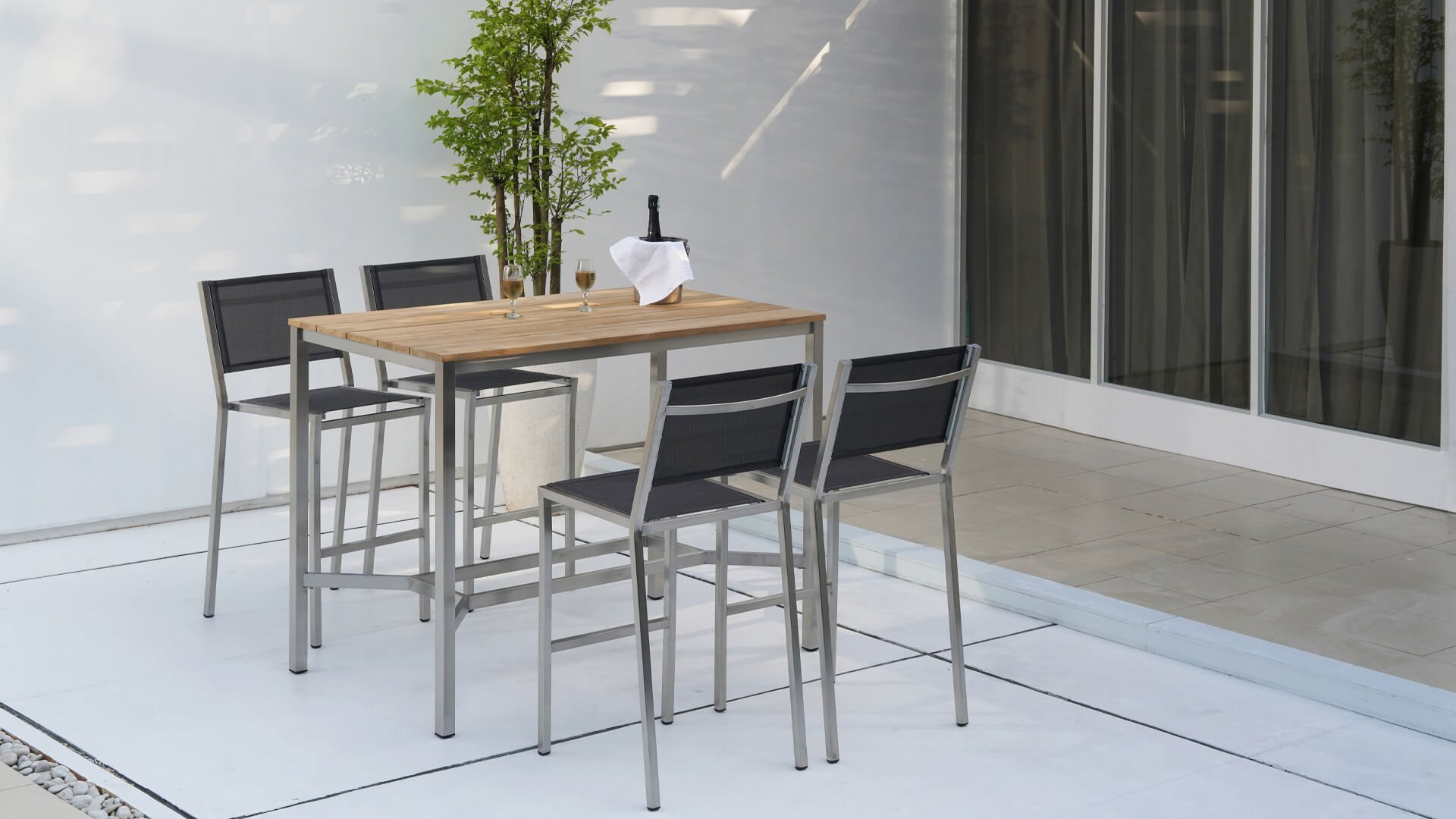 Die Zebra Pontiac-Serie hat einen hohen Sitzkomfort und ist aufgrund ihres geringen Gewichts einfach zu handhaben. Der Pontiac Barstuhl hat einen Edelstahlrahmen und einen Textilene-Bezug in Sitzfläche und Rückenlehne. Der Zebra Pontiac Bartisch mit Teakholzplatte und Edelstahlbeinen. Neben der Größe von 140 cm ist er auch in Pontiac Bartisch 80x80cm erhältlich, um ihn gemütlicher zu machen!