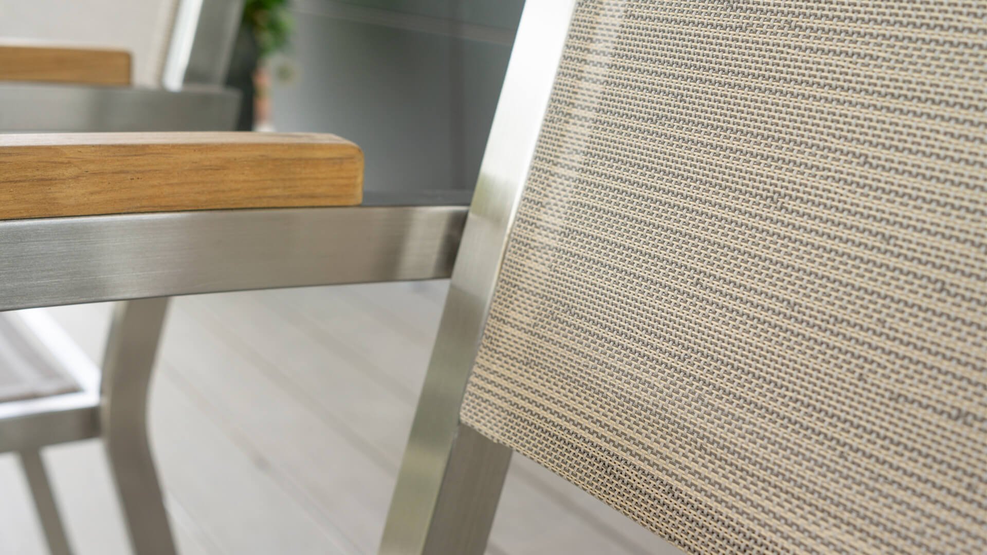 Die Pontiac Dining Serie von Zebra: Moderne Design-Gartenstühle mit zeitloser Optik und perfektem Sitzkomfort. Die Gartenstuhl-Serie Zebra Pontiac ist ein echter Klassiker mit modernem Design, zeitloser Optik und maximalem Komfort. Pontiac ist eine Gartenmöbelserie, mit der wir mit Leidenschaft den perfekten Gartenstuhl kreiert haben. Diese klassischen Stühle sind extrem bequem und leicht zu bewegen. Der Zebra Pontiac Stuhl hat einen Edelstahlrahmen und einen textilen Sitz und Lehne. Lieferbar in der Farben Argenta und Espresso. Die Teakholzdetails geben den Armlehnen Komfort und machen die Stühle ideal, um sie mit einem unserer Gartentische aus Edelstahl und einer Tischplatte aus Teakholz zu kombinieren. Auch die Kombination mit Tische unser Naxos oder Kubex Serie ist einzigartig!