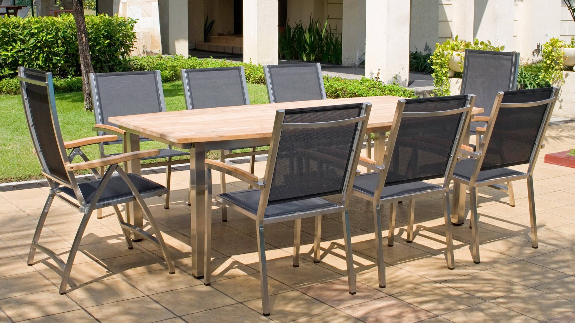 Generell ist Edelstahl ein hervorragend geeignetes Material zur Verarbeitung von Gartenmöbeln. Es ist wetterbeständig und benötigt nur geringe Pflege. Durch äußere Umwelteinflüsse kann sich jedoch Flugrost bilden. Dieser läßt sich leicht mit unseren Pflegemitteln entfernen.