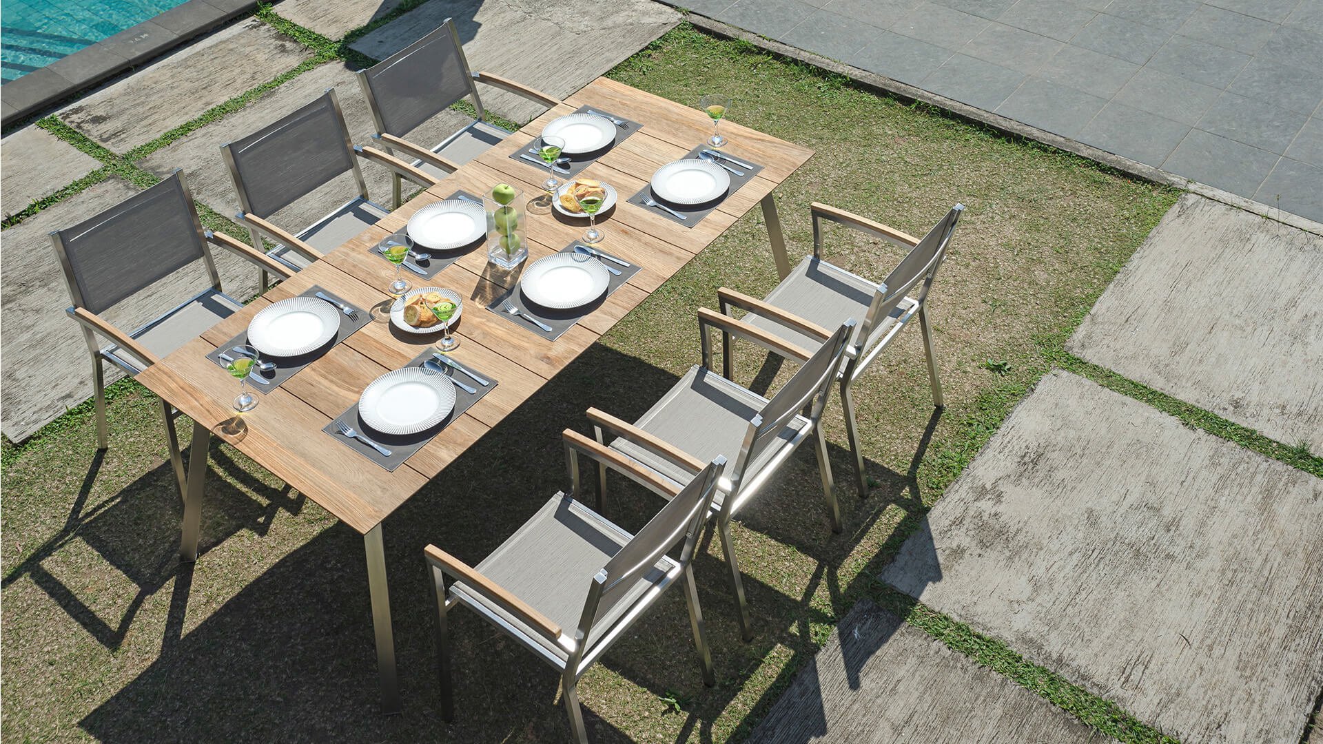 Generell ist Edelstahl ein hervorragend geeignetes Material zur Verarbeitung von Gartenmöbeln. Es ist wetterbeständig und benötigt nur geringe Pflege. Durch äußere Umwelteinflüsse kann sich jedoch Flugrost bilden. Dieser läßt sich leicht mit unseren Pflegemitteln entfernen.