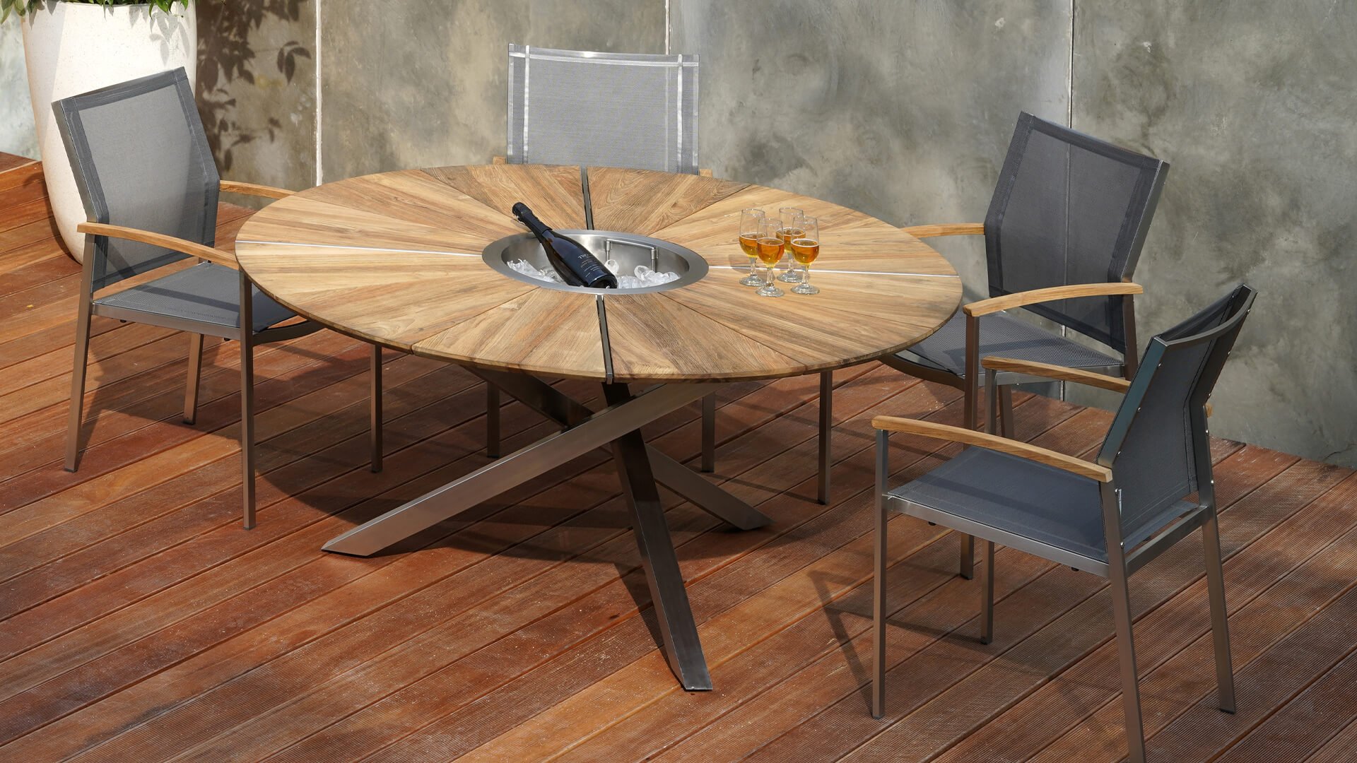 Die Zebra-greenline-Serie verwendet hochwertige Materialen, welche unter anderem aus recycelten Teakhölzern bestehen. Das recycelte Teak wird aus alten Booten, Schiffen, Brücken oder Häusern gewonnen und anschließend aufwendig selektiert, gereinigt, verleimt und gebürstet. Jedes einzelne der verwendeten Hölzer ist ein Unikat mit einer eigenen Geschichte, die sich in Unebenheiten, kleineren Astlöchern, Rillen und sonstigen Gebrauchsspuren ausdrückt und den besonderen Charme der greenline-Serie ausmacht. Die Teakholzarmlehnen perfekt auf. Setax läd mit komfortabler Sitztiefe zum Verweilen ein.